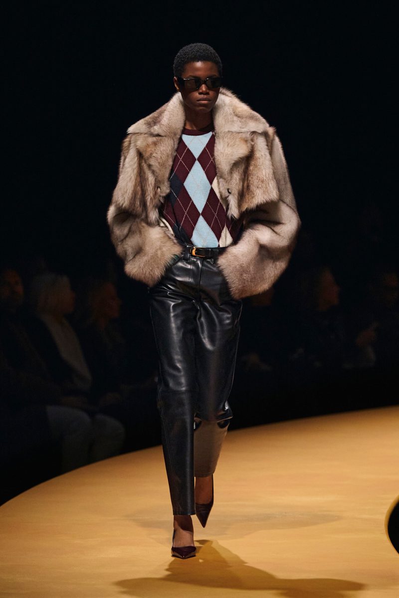 Khaite kolekcija za jesen 2025., prikazala je argyle pleteninu uparenu s kožnim hlačama i predimenzioniranim krznenim kaputom – neočekivani sukob koji je učinio da uzorak ponovo djeluje novo.